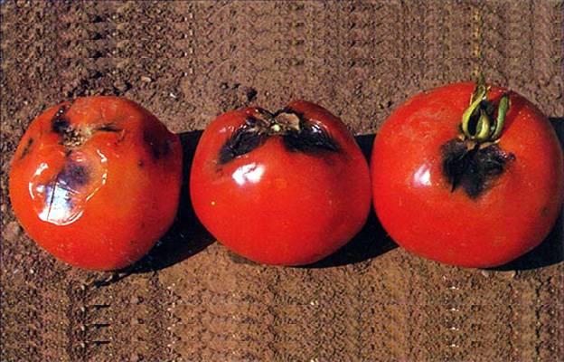 Apply lime and calcium containing fertilizer before planting and spray Calcium Nitrate @ 5g/liter at the first sign of symptom. Repeat one more spray after 10 days.