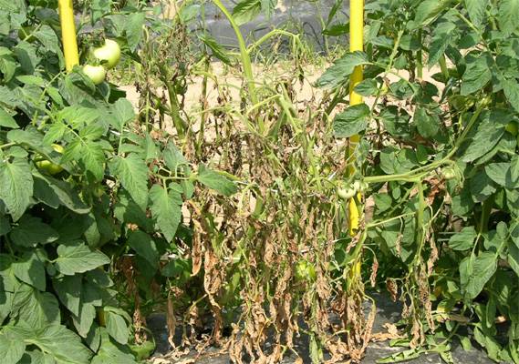 Drench seedlings with Captaf (2.0 g/l) or Copper oxychloride (3.0 g/l) or copper hydroxide (2.0 g/l) once before transplanting and once again two weeks after transplanting